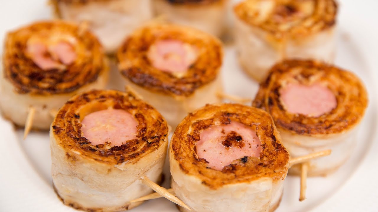 ✳️ СОСИСКИ В ЛАВАШЕ С СЫРОМ Ингредиенты: - Сосиски - Лаваш - Кетчуп - Сыр - Яйцо - Молоко Лаваш разрезаем под размер сосисок, смазываем кетчупом, посыпаем тертым сыром, укладываем сосиску и сворачиваем в рулет. Протыкаем шпажками и нарезаем. В миске смешиваем яйцо и молоко, подсаливаем и перемешиваем. В полученную смесь окунаем наши заготовки и обжариваем на сковороде с двух сторон.