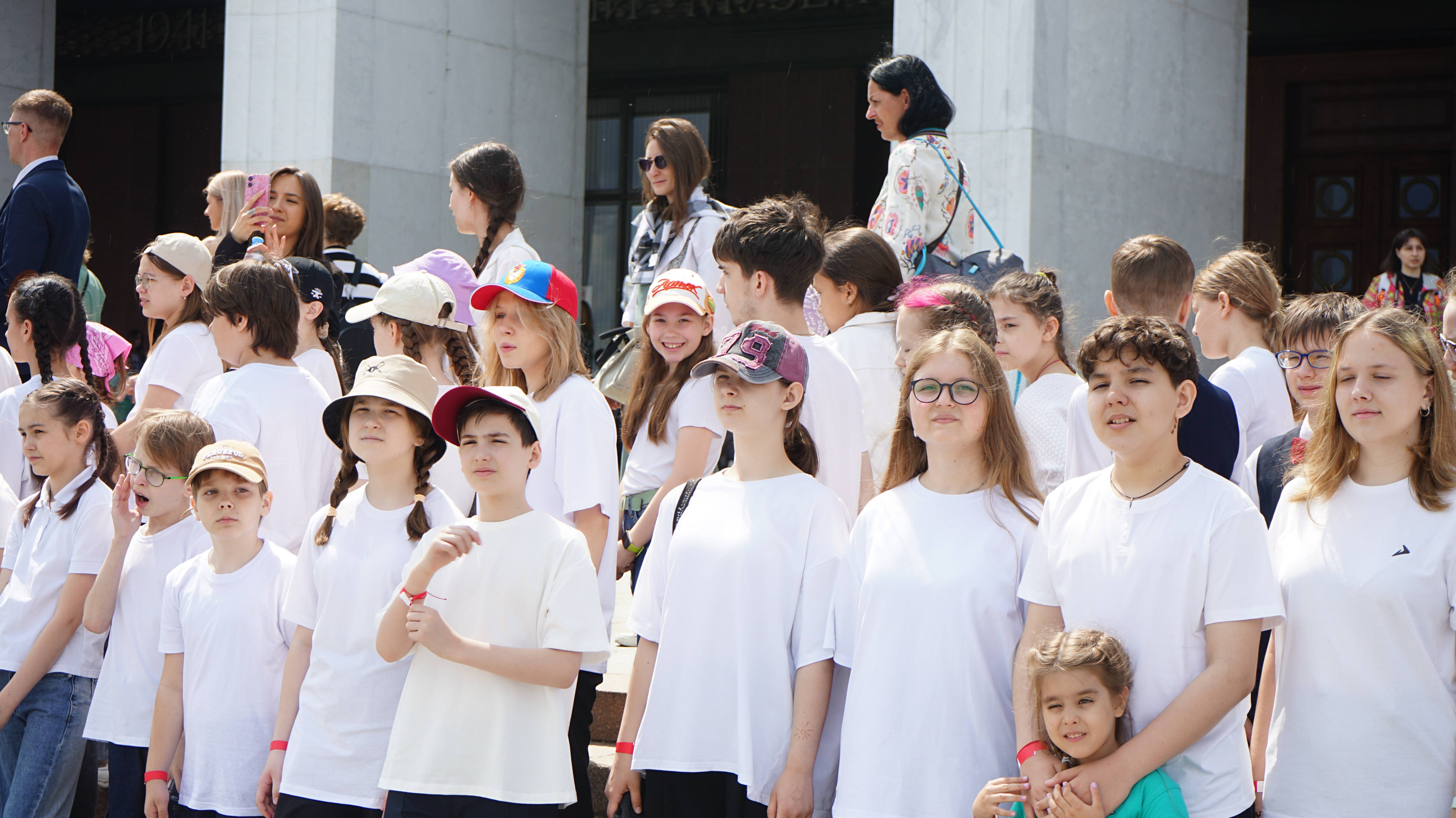 Большой концерт сводных детских школьных хоров в день защиты детей на Поклонной горе. Главная тема - 80-летие Великой Победы. Душевно, красиво, со слезой
