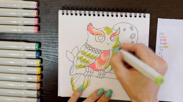 Рисунок скетч маркерами "Сова" для скетчбука | Срисовка картинки поэтапно для начинающих