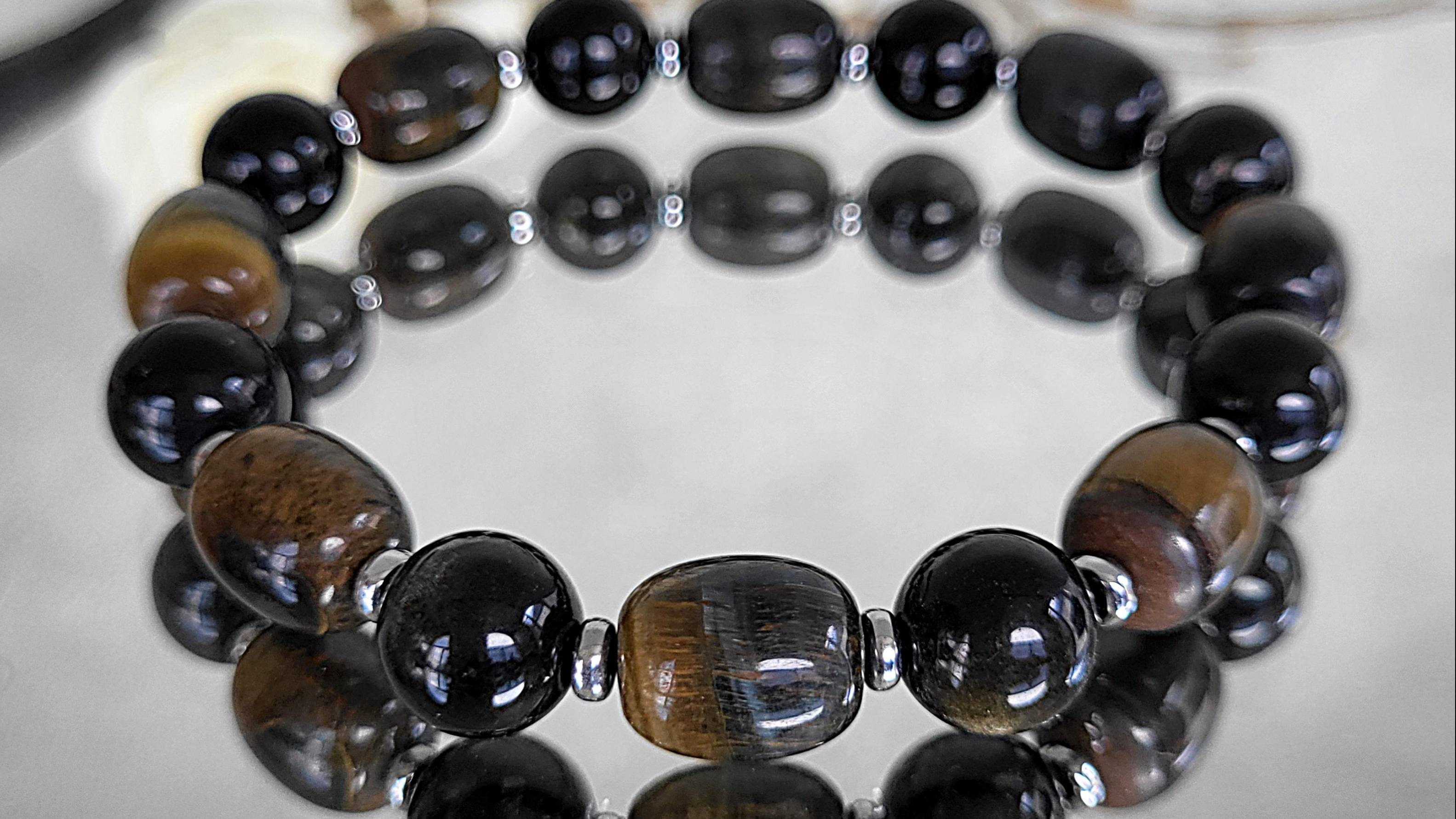 Браслет из тигрового глаза, обсидиана радужного