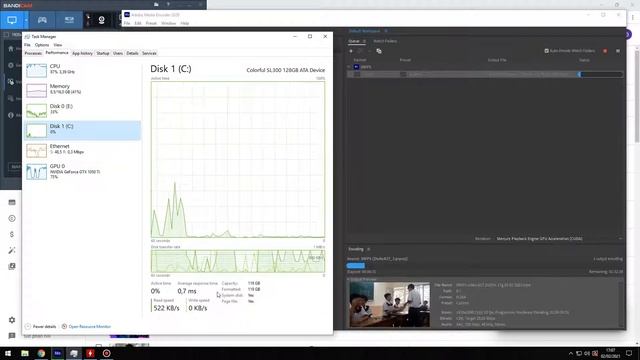 Render video with Premiere 2020 i5 3470 H61 GTX 1050Ti 16GB RAM SSD 128GB Colorful HDD 500GB Seagate The video is 2 hours and 9 minutes long and is 23GB in size, 1920x1080, 25Mpbs