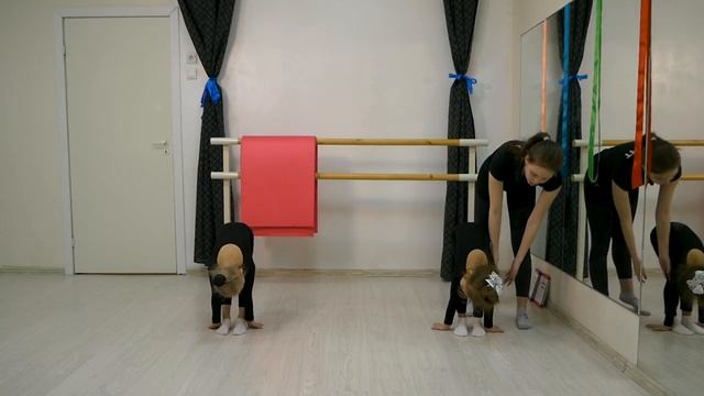 Упражнение для растяжки задней поверхности бедра. Исходное положение: стоим прямо, ноги вместе, присели на корточки, руки поставили на пол. Начинаем поднимать таз вверх, полностью выпрямляя колени, выходим в складку. Носом тянемся к полу, руками стараемся коснуться пола, если получилось – ставим ладони, если получилось уводим ладони за стопы.