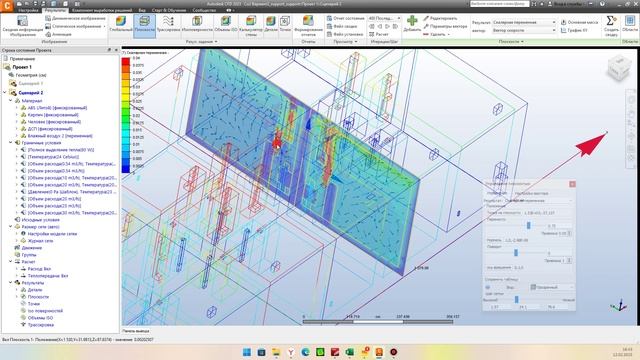 Анализ схем вентиляции по эффективности удаления СО2( углекислого газа) из помещения. Поддержание влажности в помещении при различных схемах вентиляции. В данном цикле рассматривается анализ схем вентиляции по эффективности удаления СО2( углекислого газа) из помещения. Мы рассмотрим три схемы вентиляции : Перемешивающую (Перемешивающая вентиляция — это метод организации воздухообмена внутри помещения, при котором свежий воздух равномерно распределяется по всему объему комнаты за счет создания турбулентных потоков.) Вытесняющую (Вытесняющая вентиляция — это система воздухообмена, которая основана на принципе вытеснения отработанного воздуха новым приточным воздухом. Этот метод отличается тем, что свежий воздух поступает в помещение снизу, постепенно поднимаясь вверх и вытесняя старый воздух через верхние вытяжные отверстия.) Персональную (Персональная вентиляция — это система обеспечения индивидуального воздухообмена, направленная на создание оптимальных условий для дыхания конкретного человека в определенной зоне пространства.) Также проведем анализ по влиянию температуры в помещении на эффективность схем. Будет проведено сравнение расчетов при разных температурах в помещении (серия 01 +22 0C, серия 02 + 29 0С, и серия 03 + 16 0 С). В серии 04 проведем сравнение при удвоенном количестве человек и увеличенном воздухообмене. Для перемешивающей вентиляции принят расход 60 м3/ч на человека, для вытесняющей 40 м3/ч, для персональной 30 м3/ч. В серии 05 дается представление о проблеме поддержания влажности в холодный период года Когда содержание влаги в воздухе падает до минимума (практически до нуля). В серии 06. Мы рассмотрим вариант поддержания влажности путем увлажнения воздуха в центральном кондиционере. Рассказывается о возможных способах увлажнения в установках EVS- Clima : паровое, ультразвуковое, поверхностное увлажнение, а также применение рекуператоров с утилизацией влаги. Паровое увлажнение воздуха — это эффективный метод повышения уровня влажности в системах вентиляции и кондиционирования. Он основан на использовании пара, который образуется путем нагрева воды до состояния испарения. Преимущества парового увлажнения: o Эффективность: Быстрое и точное достижение необходимого уровня влажности. o Безопасность: Отсутствие риска роста бактерий и микроорганизмов, так как пар стерилен. o Универсальность: Подходит для различных типов зданий и помещений, включая жилые дома, офисы, больницы и промышленные объекты. o Минимальное техническое обслуживание: Нет необходимости в замене фильтров или очистке системы. Недостатки парового увлажнения: o Энергозатраты: Нагрев воды требует значительного количества электроэнергии. o Капиталовложения: Стоимость оборудования и монтажа может быть достаточно высока. Ультразвуковое увлажнение воздуха — это современный и высокоэффективный метод повышения уровня влажности в системах вентиляции и кондиционирования. Он основан на использовании ультразвуковых колебаний для превращения воды в мелкодисперсный туман, который затем вводится в воздушный поток. Преимущества ультразвукового увлажнения: o Высокая точность: Позволяет точно контролировать уровень влажности в помещении. o Низкое потребление энергии: По сравнению с паровыми увлажнителями, ультразвуковые требуют меньше энергии. o Бе