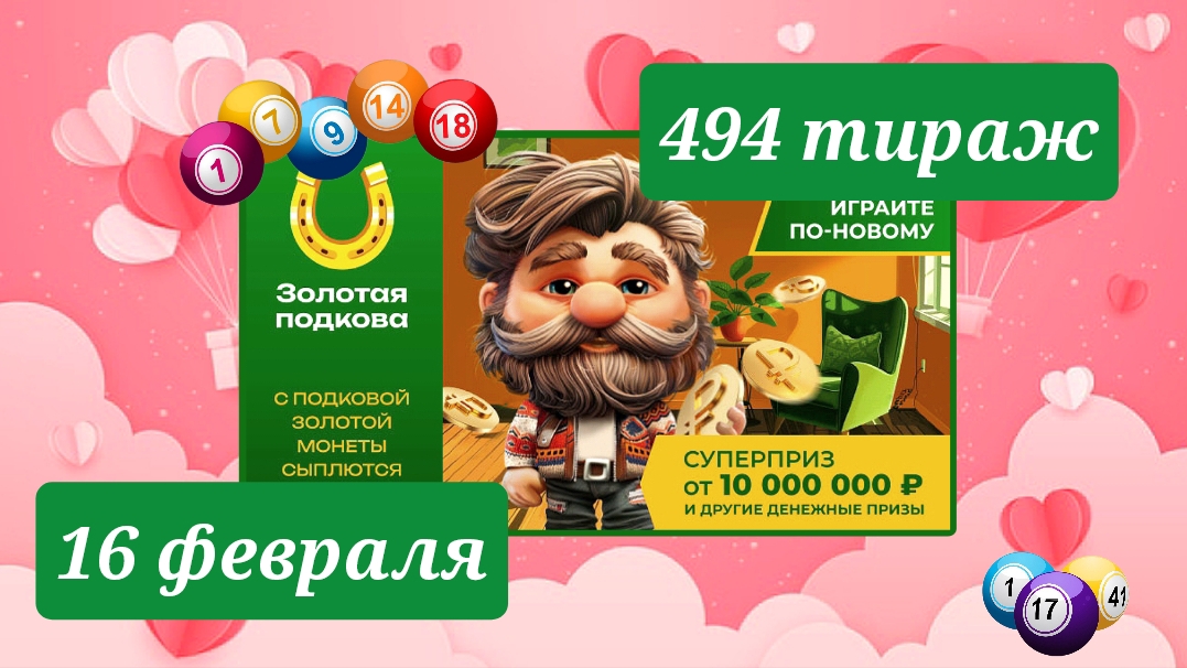 ЗОЛОТАЯ ПОДКОВА 494 тираж 16 февраля. Проверить билет под музыку с цифрами.