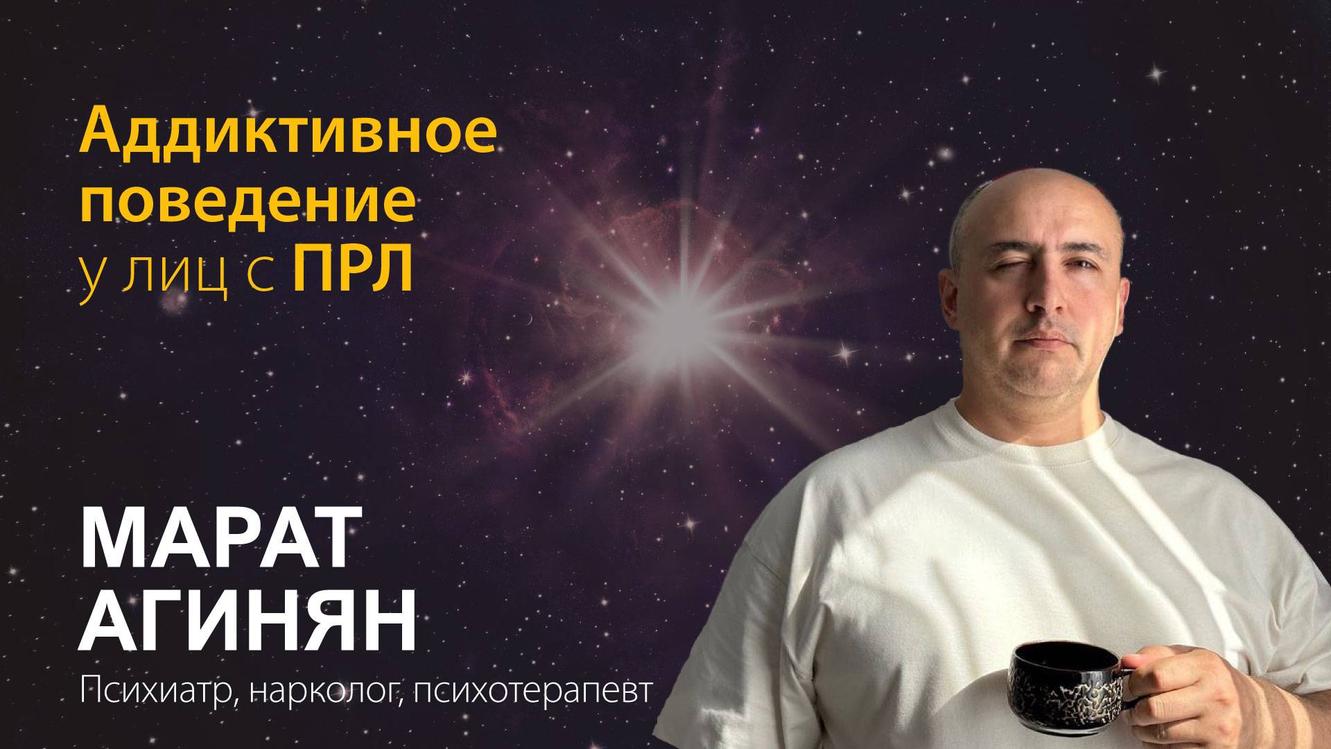 Презентация Марата https://t.me/konfaprl/166 _______________________________________ Марат Агинян Психиатр, нарколог, психотерапевт Аддиктология 🎤 24 января Тема: Аддиктивное поведение у лиц с ПРЛ Здоровье и человеческая жизнь чрезвычайно ценны, и я выбрал профессию, которая напрямую служит жизни. Фильмы: — про панические атаки (https://premier.one/show/panika) — про алкоголь (https://premier.one/show/chto-s-nami-delaet-alkogol) — еще про алкоголь (https://premier.one/show/alkogolnaya-zavisimost-vyhod) — про табак (https://premier.one/show/tabachnyj-dym) — про зависимость (https://m.youtube.com/watch?v=sy-OtuOLZlA&feature=youtu.be) в целом — короткие видеоролики (https://t.me/soberlab/2279) Интервью. Их много, вот несколько: — RTVI, про зависимость (https://www.youtube.com/watch?app=desktop&v=tS-2py1wa5I&feature=youtu.be) — RTVI, про панику (https://m.youtube.com/watch?si=wahd1WvwpucL3zfj&v=jOL1h4x8WPI&feature=youtu.be) — Утин, про зависимость (https://m.youtube.com/watch?v=jgGA029lvYA) — "Справиться проще", про трезвость (https://m.youtube.com/watch?si=5N1TOOnBSLZ23_-X&v=70maTDInkfo&feature=youtu.be) — "Чистые когниции", про зависимость (https://www.youtube.com/watch?v=O5elRppmIyU) — RTVI, еще раз про зависимость (https://youtu.be/W2eSGz2aDbI?si=zrrj0m7qF_9wZJkt) Лекции. Вот наиболее важные: — про наркологию (https://m.youtube.com/watch?v=KIpbwuBJCwM&pp=ygUs0JDQs9C40L3Rj9C9INC90LDRgNC60L7Qu9C-0LPQuNGPINCy0YfQtdGA0LA%3D) в целом — про тягу (https://m.youtube.com/watch?v=IESWeuZlhQ0&feature=youtu.be) — про срыв (https://m.youtube.com/watch?v=9cUQ1utBYHs&feature=youtu.be) — про подострую абстиненцию (ПАС) (https://m.youtube.com/watch?si=MBDIXndJuF6A33WX&v=9Thx-YxK04w&feature=youtu.be) — про современные теории зависимости (https://m.youtube.com/watch?si=9m2AGcyTQWUvgCr6&v=00RiJzowwpo&feature=youtu.be) — про самодиагностику депрессии (https://m.youtube.com/watch?si=wHFA-HEpm3Gr9xbB&v=7mhJkcjX_AU&feature=youtu.be) — про фармакотерапию депрессий (https://m.youtube.com/watch?si=slhdWne1KKUW-TLQ&v=HGs1vUPTdQs&feature=youtu.be) Публикации: — про уязвимость к зависимостям (https://habr.com/ru/articles/505604/) — личные истории зависимых (https://www.psychologies.ru/articles/trevoga-sedaet-menya-3-otkrovennye-istorii-lyudei-s-alkogolnoi-zavisimostyu/) — Форбс: статья о моей книге (https://www.forbes.ru/forbeslife/511092-zavisimost-i-ee-celovek-cto-psihiatr-narkolog-dumaet-o-prirode-vrednyh-privycek) — Reminder: "Антоним зависимости — свобода" (https://reminder.media/post/no-alcohol) Беседы с коллегами: — круглый стол о терапевтических целях (https://youtu.be/oGelpy7qwk8) — интеллектуальная оргия "Кусаем психиатров" (https://youtu.be/f1ApTkd53L4?si=CLDsfJ7XjCbwhhpE) — как составлять план предотвращения срыва (https://www.youtube.com/live/OS9U1MGHhf4?si=Prdd4ZVty2DBKutJ) — подкаст о вейпах (https://t.me/aston_radio/1920) на Aston Radio 🌐 Основатель онлайн-сервиса Sober One (https://www.soberone.ru/). 🌐 Личный сайт https://doctormarat.ru/ 👥 Эфир с Маратом: https://t.me/prlsok/2520 💬 Основная соц сеть Марата: https://t.me/soberlab ТГ канал https://t.me/konfaprl Этот Бот вопросов и техподдержки: https://t.me/konfaprl_bot Сайт https://konfaprl.ru http://konfaprl.tilda.ws ❤️Спасибо ВСЕМ нашим донатерам: https://t.me/konfaprl/234 https://t.me/konfaprl/198 Спасибо за монтаж заставки: Marina Thöle https://t.me/ShopOfHorrors https://t.me/marinatholeart Космические герои от MaxKoMusic | https://maxkomusic.com/ Музыка предоставлена https://www.free-stock-music.com Лицензия Creative Commons / Attribution-ShareAlike 3.0 Unported (CC BY-SA 3.0) https://creativecommons.org/licenses/by-sa/3.0/deed.en_US
