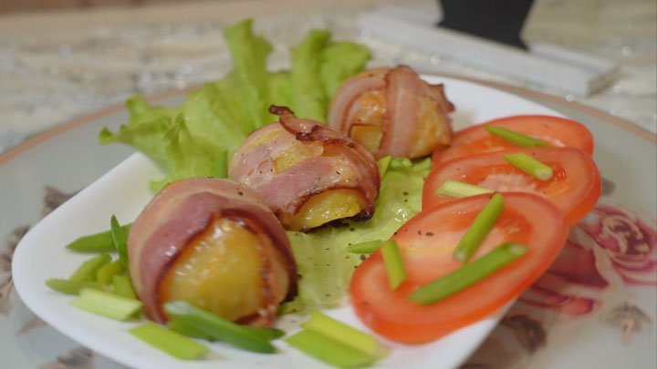 Простая кухня | Картофель с сыром в беконе