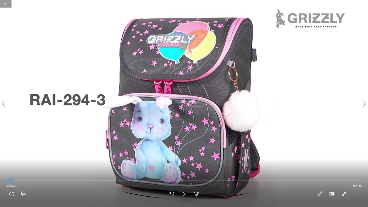 Школьный ранец для девочек RAl-294-3 с плюшевым зайцем от GRIZZLY