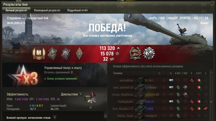 СТУДЗЯНКИ МАСТЕР на WZ-111 5A ОПЫТ: 1436 СУММАРНЫЙ УРОН: 11578 медаль ДОЗОРНЫЙ ПОДДЕРЖКА