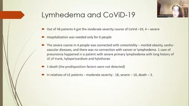A lecture by Dr. Aleksandra Rovnaya on the theme of Covid 19 and Lymphoedema. How does it effect it? Are there any precautions that need to be taken by patients? Should I take the Vaccne?