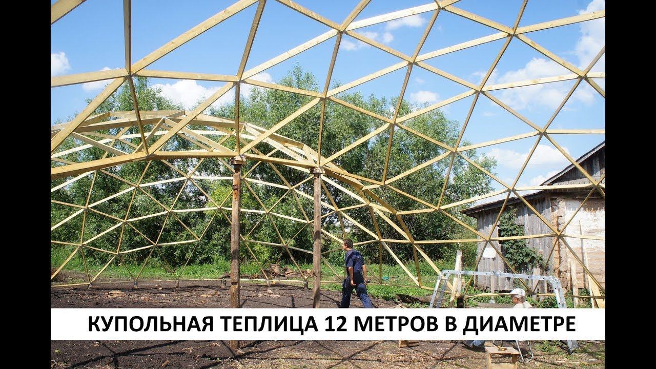 Купольная теплица диаметром 12 метров из ЛСТК, бруса. Расчет стройматериалов теплицы.