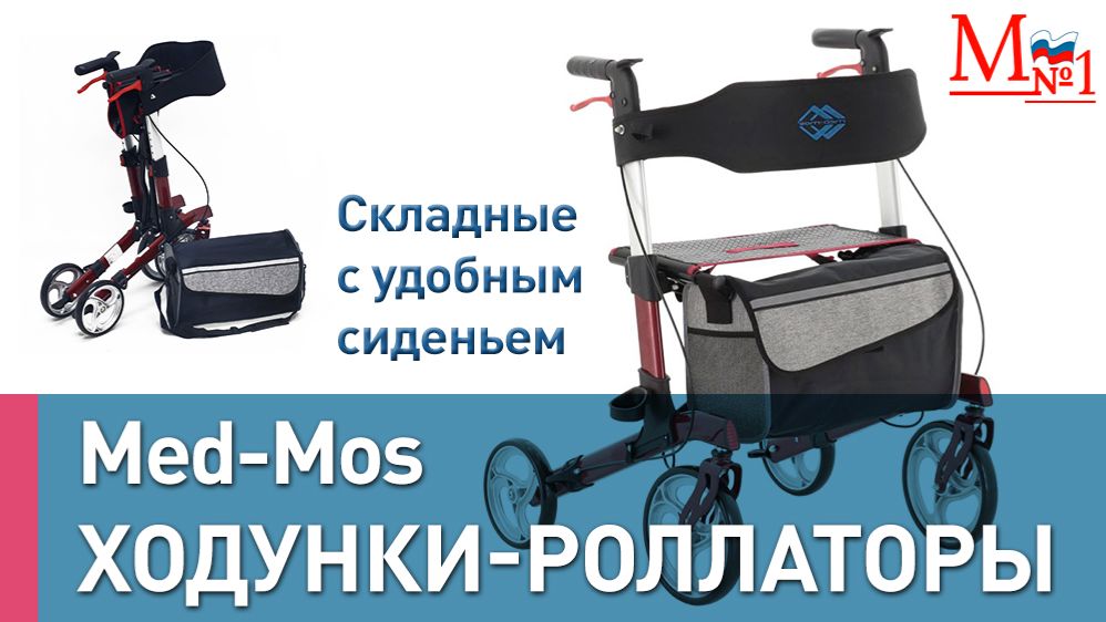 Ходунки-роллаторы с сиденьем для пожилых и реабилитации от Медтехника №1. Опора Med-Mos 186.00.10