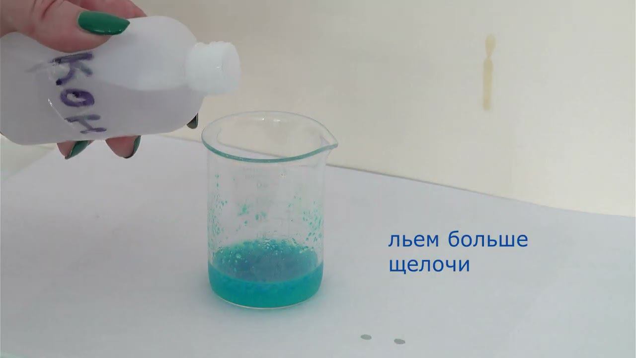 Взаимодействие соли меди (II) в растворе со щелочью. Образование основной соли, гидроксида, гидроксокомплекса