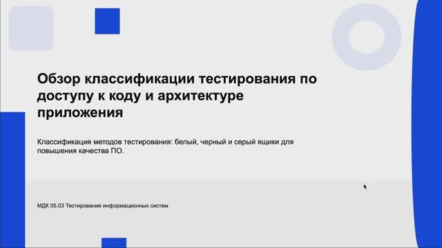 731 гр 11.02 Обзор классификации тестирования по доступу к коду и архитектуре приложения