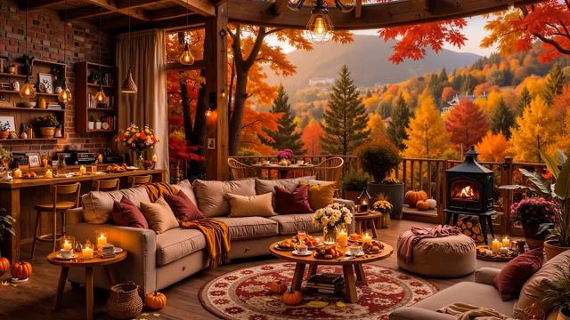 Chill Autumn Day Warm Piano Jazz Music Cozy Fall Porch Ambience Crackling Fireplace to Good Mood