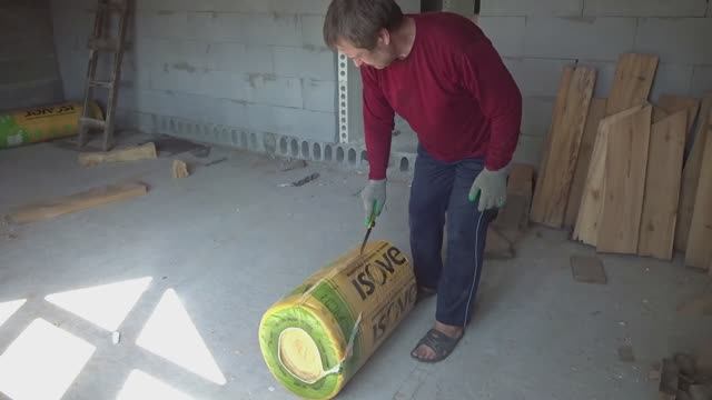 Чтобы в доме было тепло, его приходится обматывать утеплителем. Особенно потолки, через которые тепло уходит охотнее всего. В кино именно этим я и занимаюсь