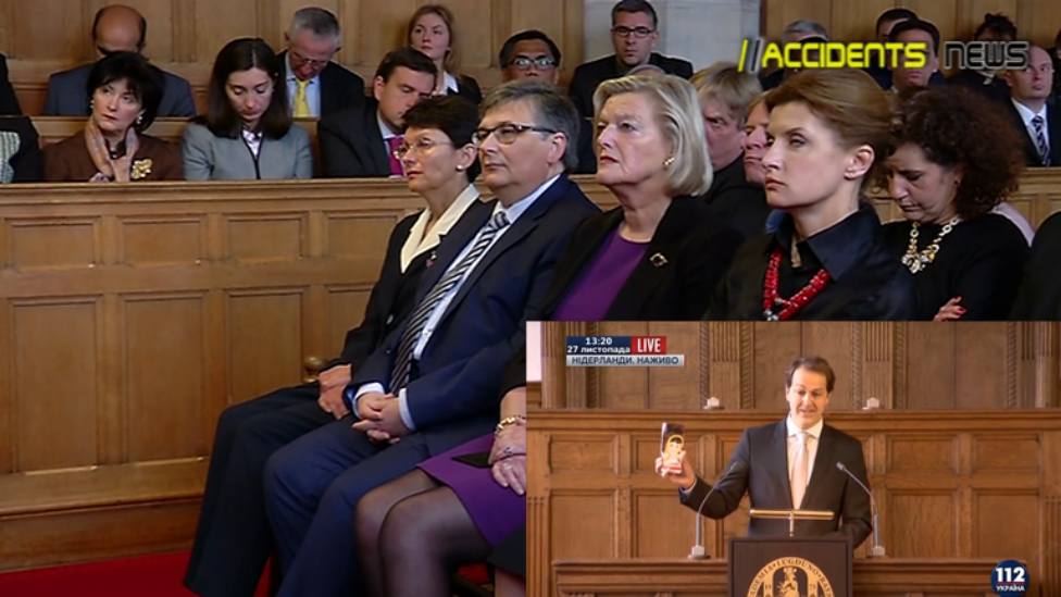 Декан юридического университета в Нидерландах перед выступлением президента Украины 27 ноября 2015 года прорекламировал его шоколад перед аудиторией. #нидерланды #шоколад #новости #события #украина #реклама
