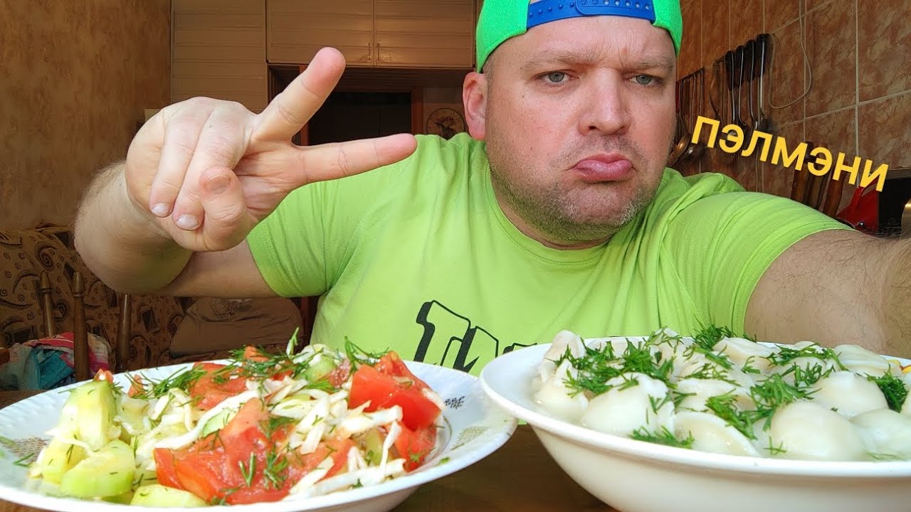 МУКБАНГ ПЕЛЬМЕНИ и салат из овощей/утренний ОБЖОР