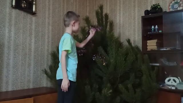 Женька наряжает Ёлку