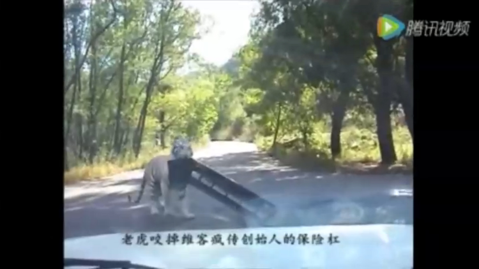 В диком парке в Пекине тигр напал на автомобиль туристов и отгрыз передний бампер. Ранее в этом же заповеднике тигр растерзал женщину.