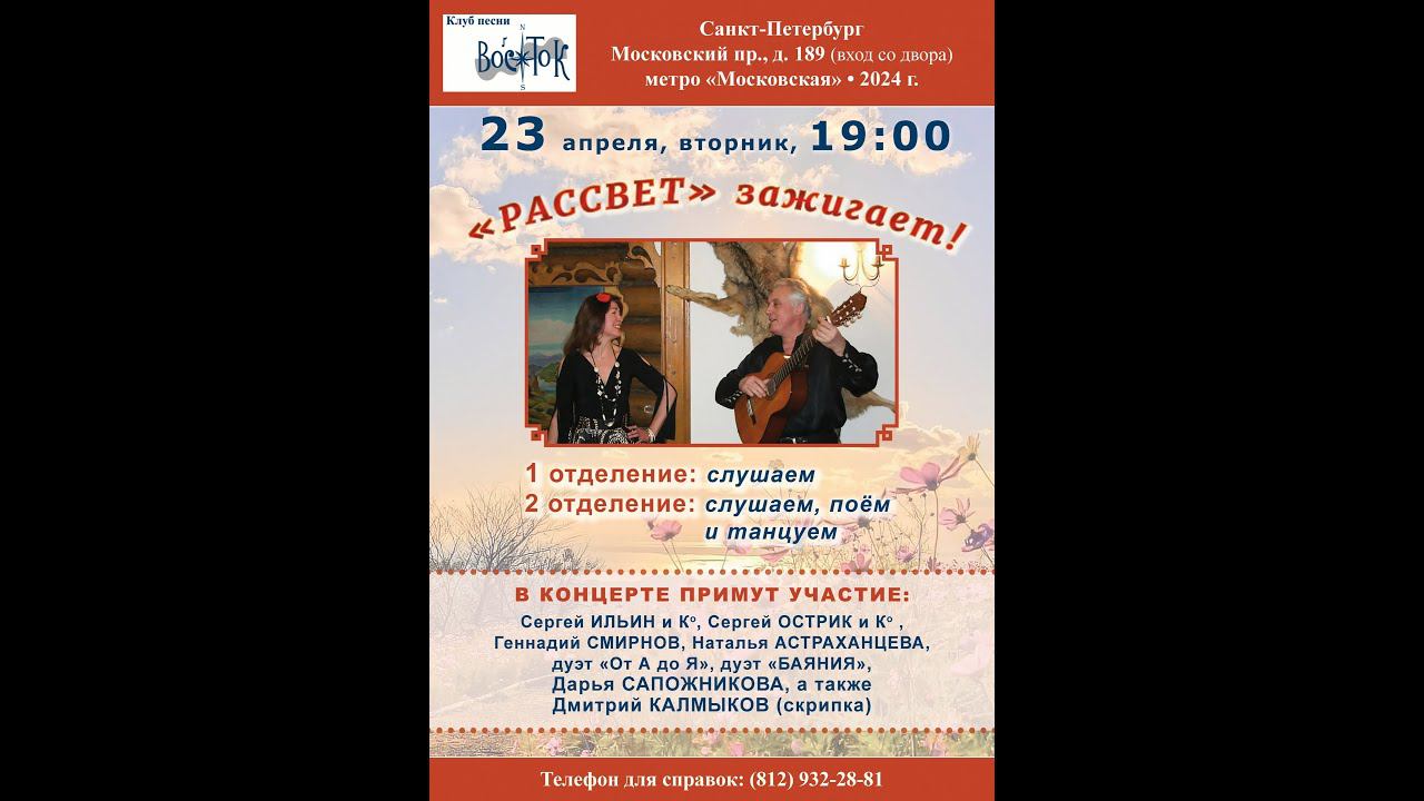 «Рассвет» зажигает! Санкт-Петербург. Клуб песни «Восток». 23.04.2024