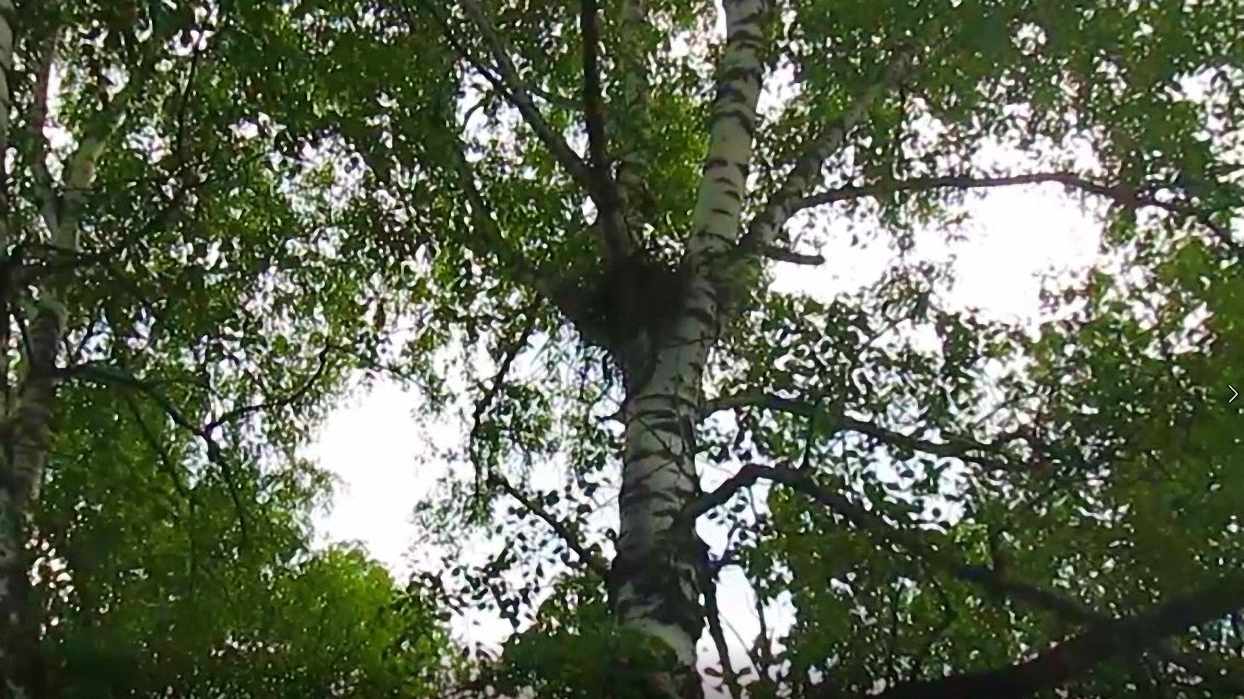 Сняли на видео гнездо, когда ездили за грибами. Оно почему-то находилось не очень высоко на дереве. Лето 2021 года