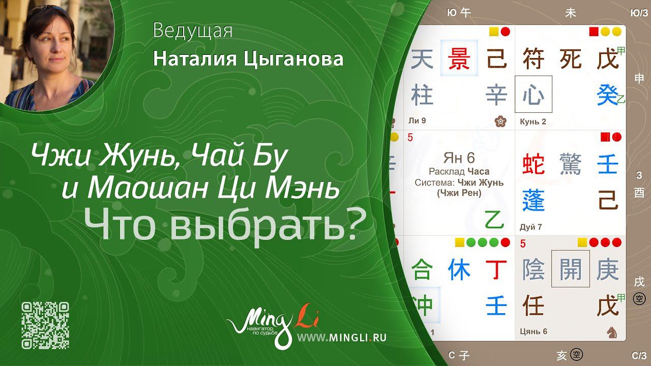 Запись прямого эфира с Наталией Цыгановой от 15 марта, который прошел в нашем Telegram-канале https://t.me/mingli_ru Присоединяйтесь к каналу заранее, чтобы не пропустить следующие трансляции и иметь возможность задать вопрос ведущим в реальном времени.   Тема эфира: «Чжи Жунь, Чай Бу и Маошан Ци Мэнь - что выбрать?»   Если вы откроете настройки калькулятора Ци Мэнь Дунь Цзя, то увидите несколько вариантов календарей и систем. В эфире Наталия рассказала о том, почему их столько, чем они отличаются, есть ли «неправильные» системы, для чего каждую из них стоит использовать. Эфир для тех, кто уже прикоснулся к могуществу Ци Мэнь и хочет разбираться лучше. Было очень много полезной информации!