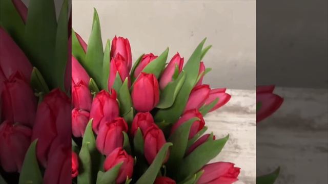 Букет красных тюльпанов в коробке "Гранатовое великолепие"