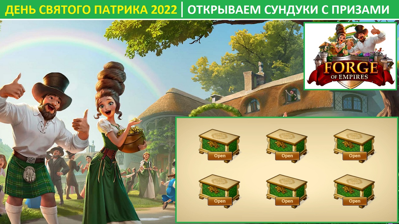 Открываем сундуки в событии День Святого Патрика 2022 ? Друзья, весь мой основной материал по Forge of Empires теперь публикуется на платном сервисе Boosty (месячная подписка - 100 рублей): https://boosty.to/put_svetlyh ●▬▬▬▬▬▬▬▬▬▬▬▬ஜ۩۞۩ஜ▬▬▬▬▬▬▬▬▬▬▬▬● ░░░░░ ДОПОЛНИТЕЛЬНЫЕ МАТЕРИАЛЫ ПО FOE ░░░░░ ●▬▬▬▬▬▬▬▬▬▬▬▬ஜ۩۞۩ஜ▬▬▬▬▬▬▬▬▬▬▬▬● ? Руководство игрока по эффективной планировке и перепланировке города в FoE: https://youtu.be/kiDSmN81ZwI ? Перенос плана города в FoE Helper: https://youtu.be/77bEXDBiEWg ? Как правильно оптимизировать город / план оптимизации, советы: https://youtu.be/hd1rFqBQWjI ? Стратегия развития города (понятие, какие бывают, отличия): https://youtu.be/8jcS-NRJOkM ? Ошибки планировки построек в городе, примеры неэффективной застройки зданий FoE: https://youtu.be/mwSQ1ELMTjo ? Переход города в новую эру (гайд, ошибки, советы): https://youtu.be/1LlD4Vu5Yrw ? Как быстро перейти из эпохи прогрессивизма в завтра: https://youtu.be/aw0Gqq00VAM Практика перехода города в новую эпоху в Forge of Empires (по шагам): https://youtu.be/XHV8gDMvmyU ? плагин Foe Helper для браузера Chrome: https://chrome.google.com/webstore/detail/foe-helper/bkagcmloachflbbkfmfiggipaelfamdf?hl=ru ? Таблица эффективности особых строений ФоЕ: https://disk.yandex.by/d/ZSqaBTl_U16JCw ? Таблица расчета эффективности вариантов сборки сета "Урожайная Ферма" (скачать): https://yadi.sk/i/TF3wsjbbj5HIWA ●▬▬▬▬▬▬▬▬▬▬▬▬ஜ۩۞۩ஜ▬▬▬▬▬▬▬▬▬▬▬▬● ░░░░░ МАТЕРИАЛЫ о СЕТАХ (параметры, сборка) ░░░░░ ●▬▬▬▬▬▬▬▬▬▬▬▬ஜ۩۞۩ஜ▬▬▬▬▬▬▬▬▬▬▬▬● ? Как самому собрать любой сет с помощью FoE Event Set Builder: https://youtu.be/mDCwnKhiDGA ? Все о сетах в FoE / Характеристики, варианты сборки, где найти: https://youtu.be/iTVRIRdrjDo ? Какие сборки Урожайной Фермы можно собрать: https://youtu.be/_Inb-uj6-dg ? Какие сборки Зимней Пекарни можно собрать: https://youtu.be/rxL292CUgyE ? Что можно собрать из сета "Терракотовая Винодельня": https://youtu.be/hNFETkeFXaY ●▬▬▬▬▬▬▬▬▬▬▬▬ஜ۩۞۩ஜ▬▬▬▬▬▬▬▬▬▬▬▬● ░░░░ ОБУЧАЮЩИЙ ЦИКЛ по FORGE OF EMPIRES ░░░░ ●▬▬▬▬▬▬▬▬▬▬▬▬ஜ۩۞۩ஜ▬▬▬▬▬▬▬▬▬▬▬▬● ? Урок 1 - Возможности города, типы ресурсов в игре, классификация зданий: https://youtu.be/iMSYtOEevPM ? Урок 2 - Как правильно выбрать лучшее строение в игре / Расчет эффективности зданий: https://youtu.be/HK5eXPg18QI ? Урок 3 - Баланс базовых ресурсов в городе (расчет, зачем нужно знать): https://youtu.be/Q5hB9uljG20 ? Урок 4 - Принципы развития города (как правильно играть), расчет его эффективности: https://youtu.be/mzUutY7wAf8 ? Урок 5 - Стратегии развития города в FOE: https://youtu.be/8jcS-NRJOkM ? Урок 6 - Типы и виды городов в Forge of Empires: https://youtu.be/52WB3HvF5w8 ? Урок 9 - как быстро проходить квесты ивента: https://youtu.be/OSHOEW344uY ●▬▬▬▬▬▬▬▬▬▬▬▬ஜ۩۞۩ஜ▬▬▬▬▬▬▬▬▬▬▬▬● ░░░░░░░░░░░░░ Немного о себе ░░░░░░░░░░░░░ ●▬▬▬▬▬▬▬▬▬▬▬▬ஜ۩۞۩ஜ▬▬▬▬▬▬▬▬▬▬▬▬● Меня зовут Максим (ник Lightmage в игре), я из Минска (Беларусь). Мне 46 лет, играл в FOE с конца 2017 года до ноября 2019 года. Пришел заново в игру в мае 2020 года. Буду рад Вашим комментариям на тему игры Forge of Empires. Пишите свои пожелания, замечания и все в таком духе. :) Подписывайтесь, ставьте лайки (это по желанию). :) До встречи!