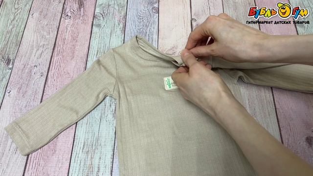 355373 Лонгслив BabyCosy на кнопках в рубчик с декоративной нашивкой светло-коричневый