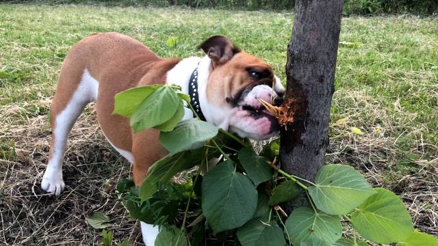 Английский бульдог Черри прикидывается бобром.