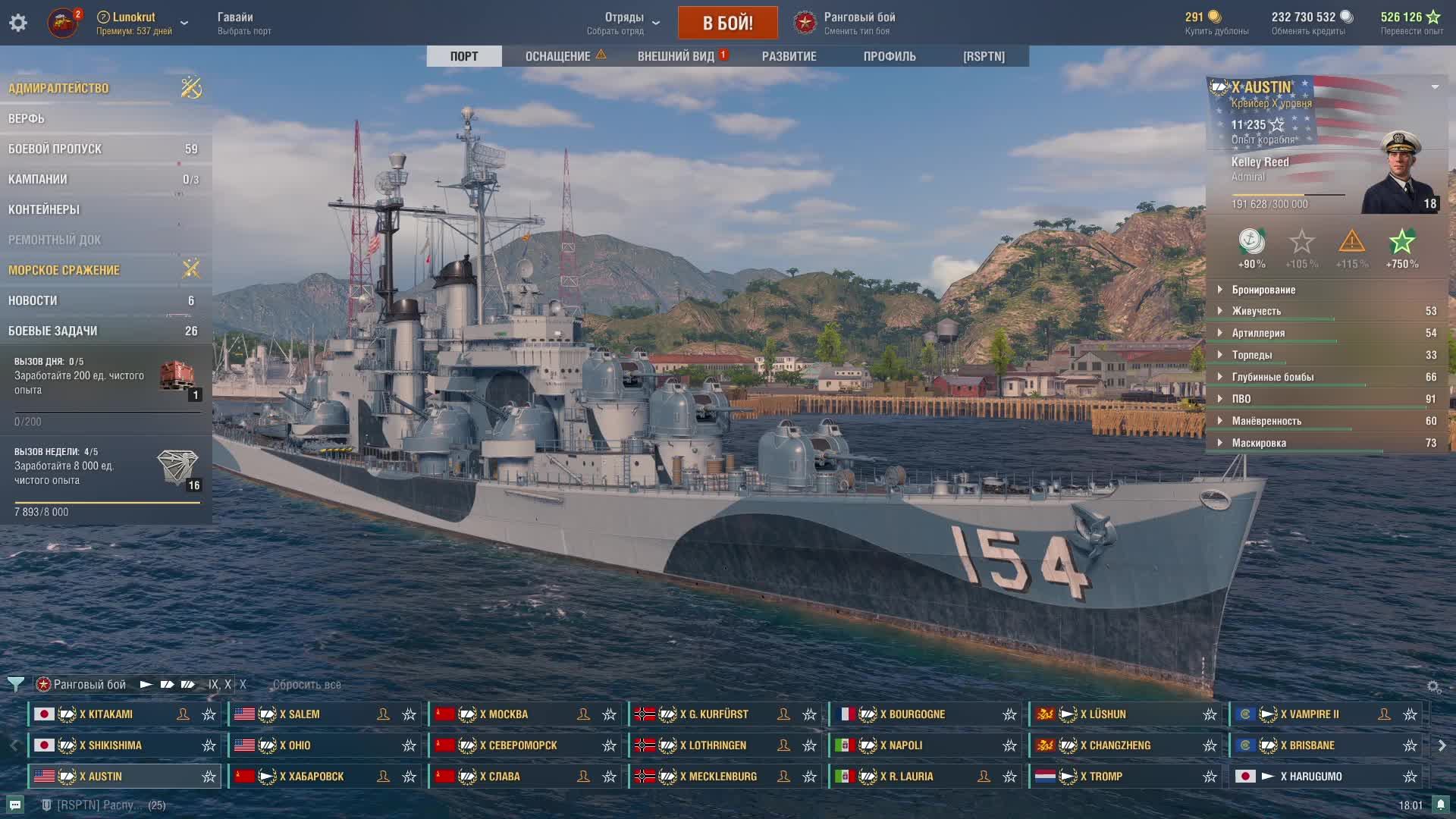 Мир кораблей - AUSTIN Крейсер за сталь 10 уровень Америки)