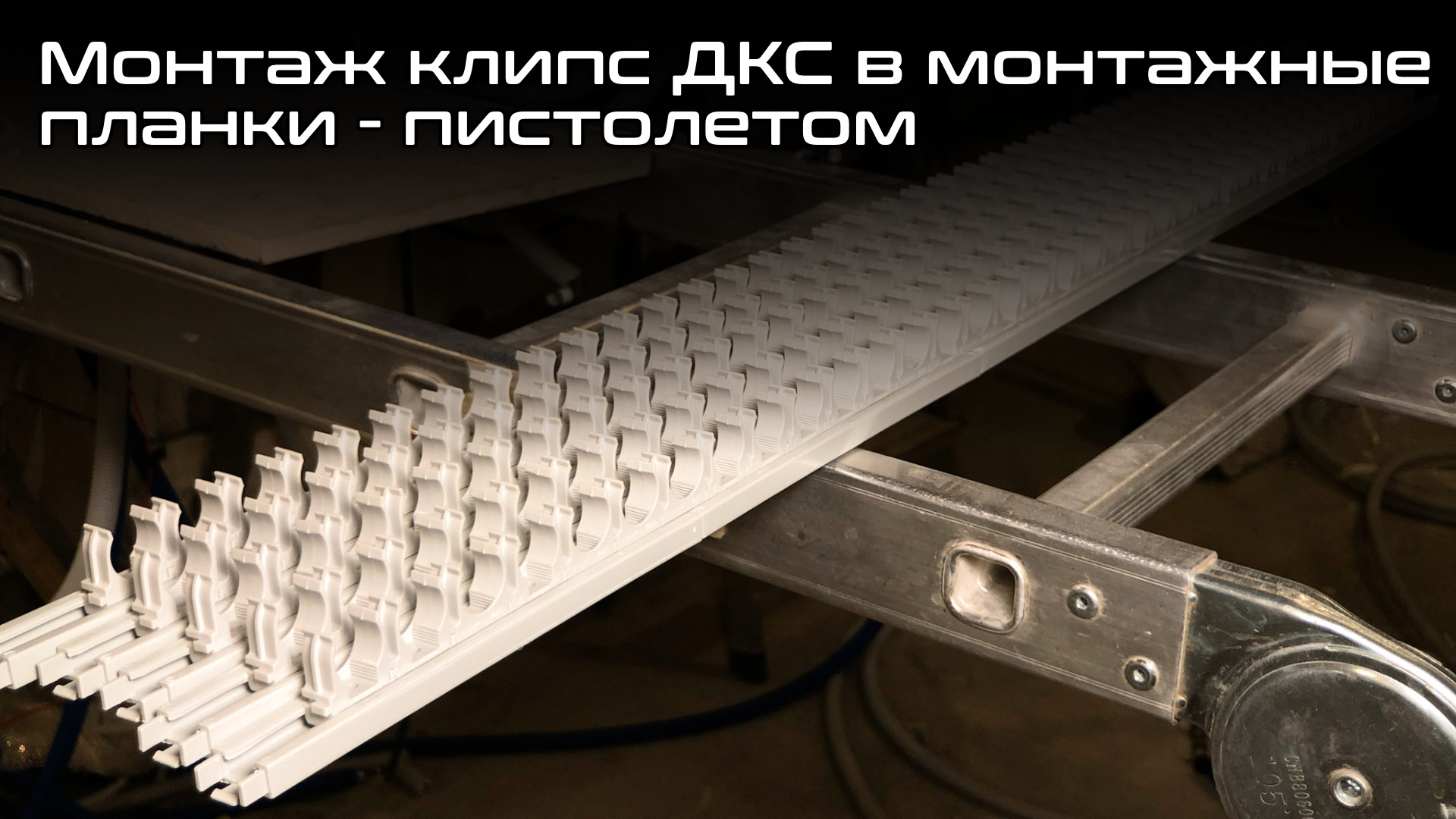 Монтаж клипс ДКС в монтажные планки ДКС с помощью монтажного пистолета Toua. DKC