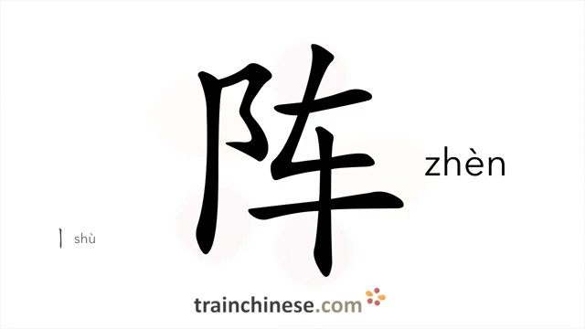 阵 (zhèn) spell, short period; front, burst, battle array; position; spate