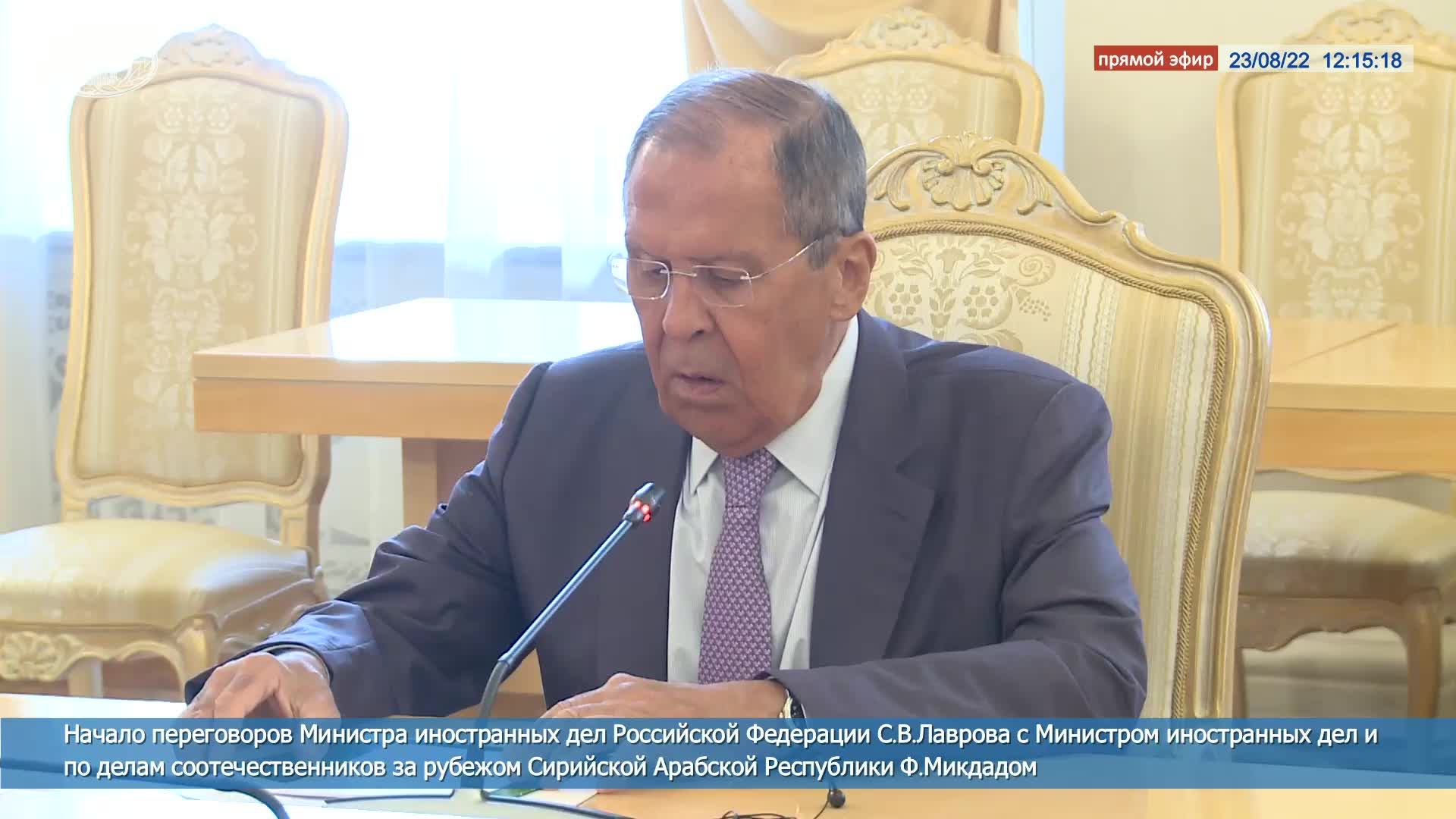 ? #ПрямойЭфир: Начало переговоров С.В.Лаврова и главы МИД Сирии Ф.Микдада
