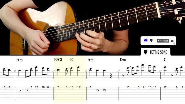 Разбор на гитаре и табы песни - TETRIS Theme Song (Korobeiniki)