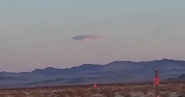 НЛО длиной один километр замечен над горной цепью в направлении базы ВВС Неллис. Съемки проходили на внеземном шоссе (Extraterrestrial Freeway), районе, известном своими наблюдениями НЛО в глуши. Это видео представляет собой впечатляющий снимок настоящего инопланетного корабля в районе Невады прячущегося в облаке для маскировки. EXOPEDIA.su
