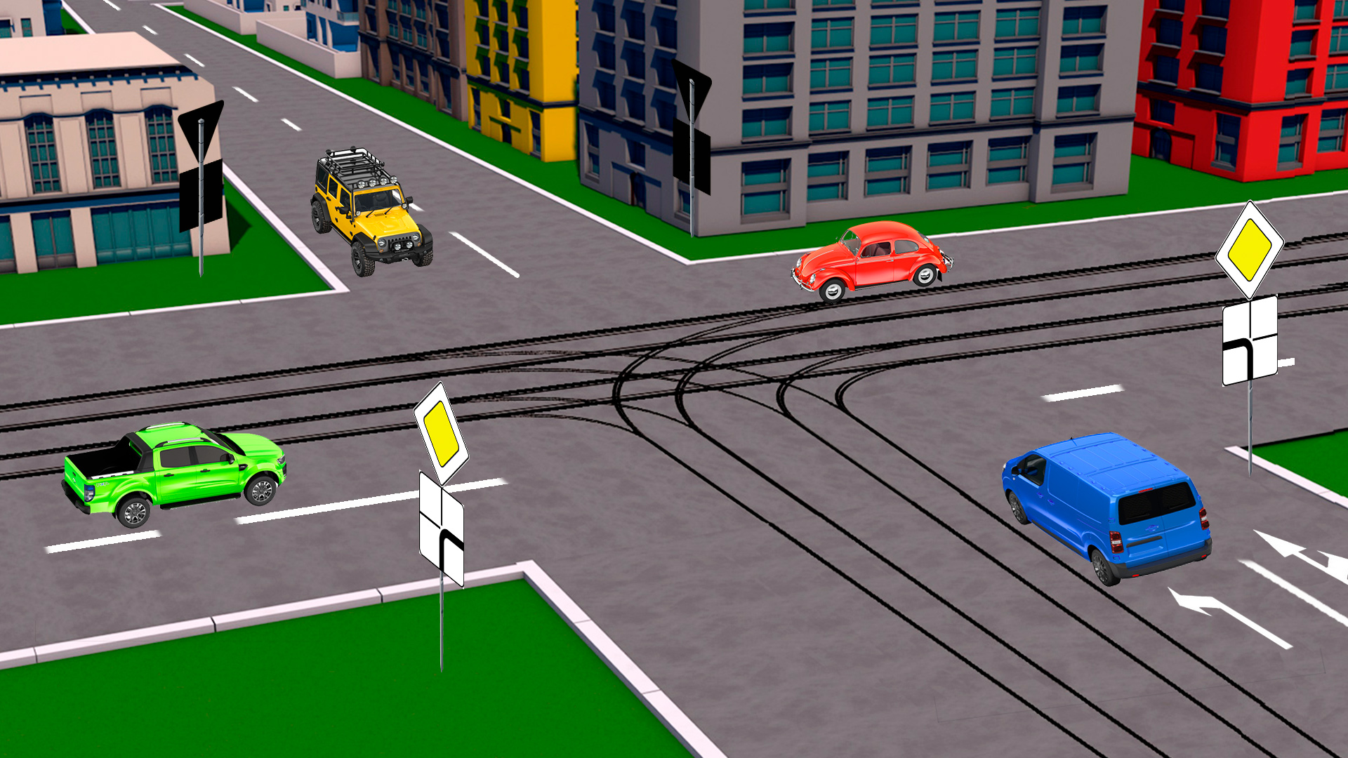 У кого из водителей только одна разрешенная траектория для движения?