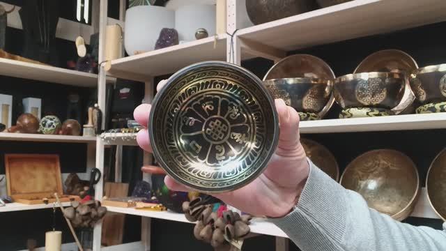 Литая поющая чаша (9 см, нота: Фа, 698 Гц) / Black Tibetan singing bowl / shamanic.moscow