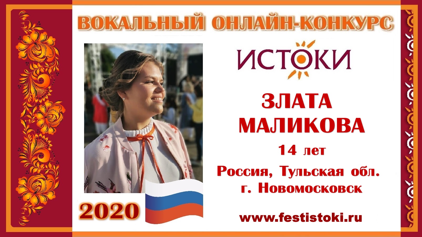 Участница Вокального онлайн-конкурса "Истоки" - 2020. Песня "У колодезя вода". Авторы: Гр. "Пелагея". Сайт: www.festistoki.ru / www.festistoki.com E-mail: festistoki@mail.ru