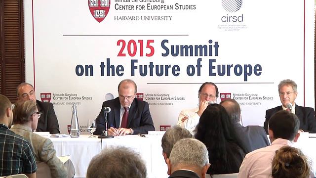 Building Sustainable Prosperity in the Euro Area: What Will it Take? Chair: Hans-Helmut Kotz, Visiting Professor of Economics, Harvard University; Resident Fellow, Center for European Studies; Professor of Economics, Freiburg University Gikas Hardouvelis, Professor of Finance and Economics, University of Piraeus; Chief Economist & Director of Research, Eurobank Group; Minister of Finance of Greece (2014-2015) Ricardo Hausmann, Professor of the Practice of Economic Development, Harvard Kennedy School; Director, Center for International Development, Harvard University Daniel Gros, Director, Centre for European Policy Studies Markos Kyprianou, Deputy President, Democratic Party of Cyprus; EU Commissioner for Health and Consumer Protection (2004-2007); EU Commissioner for Health (2007-2008); EU Commissioner for Budgetary Affairs (2004) Charles Wyplosz, Professor of International Economics, Graduate Institute of International and Development Studies Sponsors: Minda de Gunzburg Center for European Studies; Center for International Relations and Sustainable Development Wednesday, Sep 23rd, 2015 ---------- The 2015 Summit on the Future of Europe is a two-day conference examining complex issues facing Europe today, such as migration, security and the relationship to southern neighbors. For more information, please see: https://ces.fas.harvard.edu/#/page/summit