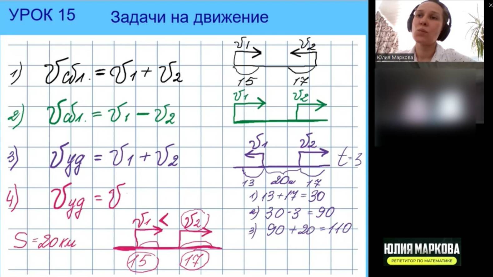 Фрагмент урока 4 класс. Тема - задачи на движение