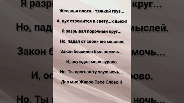 ХРИСТИАНСКИЕ ПЕСНИ ДЛЯ ХВАЛЫ ПОКЛОНЕНИЯ ПРОСЛАВЛЕНИЯ ЕВАНГЕЛИЗАЦИИ ДУХОВНОГО РОСТА ПРОБУЖДЕНИЯ ВОЗРОЖДЕНИЯ #господь#музыка#христианская_музыка#музика#христианскиепесни#бог#христианскиестихи#любовь#христианство#стихи#песня#песни#иисус#иисусхристос#иисусмойбог#иисус_христос#иисусбог#иисусгосподь#хвалы_и_поклонения#хваление#хвала#прославление#духсвятой#духовныйрост#духовноепробуждение#духовность#евангелие#евангелизация#евангельскаявесть#духовный_рост#пробуждение#рождество#рождествохристово#божий#божийнарод#божьеслово #ХристианскаяПесня #ХристианскоеПоклонение #ХристианскаяНоваяПесня #ПастырьМоейДушы #ХристианскаяМузыка #ПесняСлавы #Иисус #ЛюбовьБожья #ХристианскиеТексты #СлаваГосподу #ВераИПоклонение #ВечнаяЛюбовь #RussianChristianSong #RussianChristianWorship #RussianChristianMusic #RussianWorship #NewRussianChristianMusic #RussianChristianMusic #RussianSongOfPraise #Jesus #GodsLove #ChristianLyrics #GloryToGod #RussianFaithAndWorship #EternalLove #Пасха #Воскресение #ХристосВоскрес #пробуждение #возрождение https://stihi.ru/avtor... "СИМФОНИЯ МОЯ - ТЫ, БОГ!!!" СЛОВА, МУЗЫКА, ОБРАБОТКА: ЖАННА ВОЛКОВА-ВАРЛАМОВА https://stihi.ru/2025/... Стихи Жанна Юрьевна Волкова-Варламова Вступление: Симфония моя - Ты, Бог!!! 1 Куплет Не силой воли, не мечом... Победа мне даётся в руки. Я был когда-то палачом Своей души, терпя лишь муки. Плоть восстаёт, как дикий зверь... И, тянет в пропасть безвозвратно. Но, Ты открыл другую дверь... Где стало всё светло, понятно. Припев: Симфония моя, звучи... Я буду в такт с Тобою петь Небесный гимн в Твоей Крови... Чтоб духом мне не ослабеть!!! 2 Куплет Симфония моя - Ты, Бог!!! В согласии с Тобой дышу. Ты дал мне сил, Ты мне помог... И, я по Духу лишь живу! Не воинством и не борьбой... А, благодатью я спасён! Когда мой дух поёт с Тобой... Грех навеки будет удалён!!! Припев: Симфония моя, звучи... Я буду в такт с Тобою петь Небесный гимн в Твоей Крови... Чтоб духом мне не ослабеть!!! Симфония моя, звучи... Я буду в такт с Тобою петь Небесный гимн в Твоей Крови... Чтоб духом мне не ослабеть!!! 3 Куплет Желанья плоти - тяжкий груз... А, дух стремится к свету...к выси! Я разрывал порочный круг... Но, падал от своих же мыслей. Закон бессилен был помочь... И, осуждал меня сурово. Но, Ты прогнал ту злую ночь... Дав мне Живое Своё Слово!!! Припев: Симфония моя, звучи... Я буду в такт с Тобою петь Небесный гимн в Твоей Крови... Чтоб духом мне не ослабеть!!! Симфония моя, звучи... Я буду в такт с Тобою петь Небесный гимн в Твоей Крови... Чтоб духом мне не ослабеть!!! Бридж И если двое на земле В согласии просят, веря чуду... Отец Небесный в тишине Ответит им: - Я с вами буду! Припев: Симфония моя, звучи... Я буду в такт с Тобою петь Небесный гимн в Твоей Крови... Чтоб духом мне не ослабеть!!! Заключение: Симфония моя - Ты, Бог!!! Дела плотские победить помог!!! Дела плотские победить помог!!! 16.07.2025 Жанна Волкова-Варламова