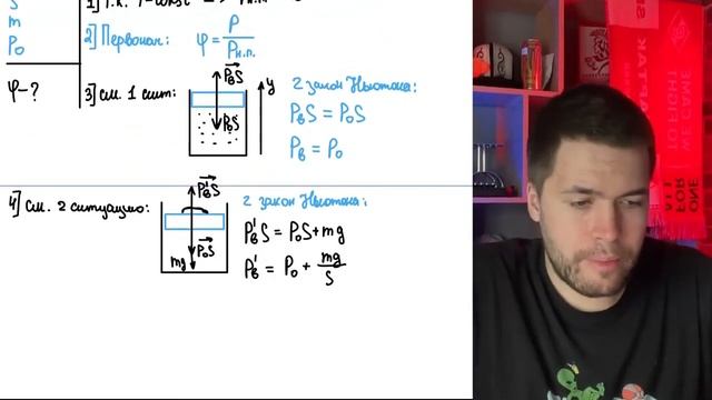 Влажный воздух находится в вертикальном гладком цилиндрическом сосуде под невесомым поршнем - №20866