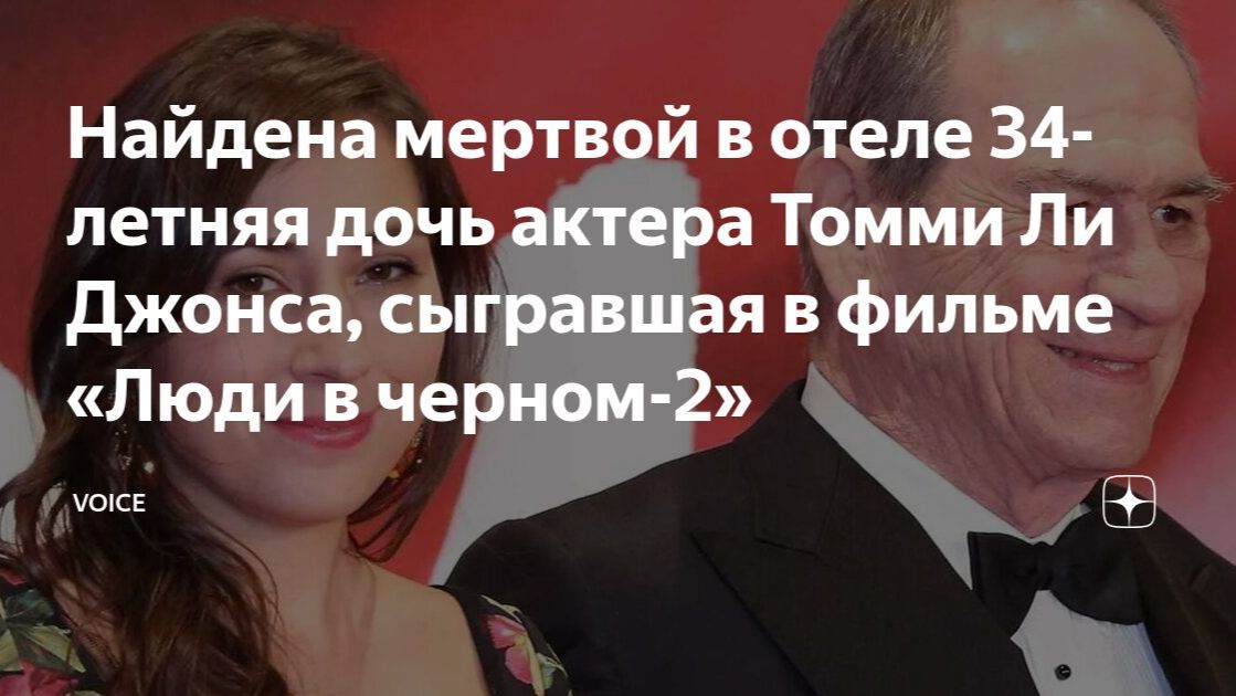Американскую актрису Викторию Джонс обнаружили мертвой в отеле в штате Калифорния. Полицейские рассказали о трагедии.В ночь на 1 января 2026 года в 3:14 в отель Fairmont San Francisco в штате Калифорния, США прибыла бригада скорой медицинской помощи после сообщения о том, что женщине стало плохо. Сотрудники экстренных служб констатировали смерть одного человека. На место происшествия также приехали сотрудники полицейского управления и судебно-медицинской экспертизы Сан-Франциско. «Белую женщину в возрасте около 35 лет нашли без сознания, и персонал отеля был предупрежден об этом. Была проведена сердечно-легочная реанимация, но прибывшая на место бригада скорой помощи констатировала смерть»В умершей женщине опознали дочь 79-летнего лауреата «Оскара», актера Томми Ли Джонса и его второй жены Кимберли Клафли. Виктория родилась 3 сентября 1991 года. Она дебютировала в кино в 11-летнем возрасте, сыграв в фильме с участием отца «Люди в черном-2». Виктория Джонс также снялась в проектах «Холм одного дерева», «Три могилы», «Простите, ненавистники». Девушка вместе с отцом появлялась на красных дорожках международных фестивалей.Томми Ли Джонс хвалил дочь. «Она хорошая актриса, у нее есть членский билет Гильдии киноактеров США, она безупречно говорит по-испански. Когда она была маленькой, я попросил Летисию, ее няню, разговаривать с ней по-испански», — рассказал актер в одном из интервью.