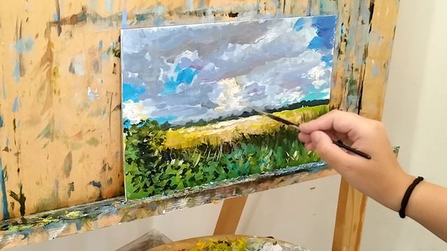 Желтое поле - процесс создания картины маслом