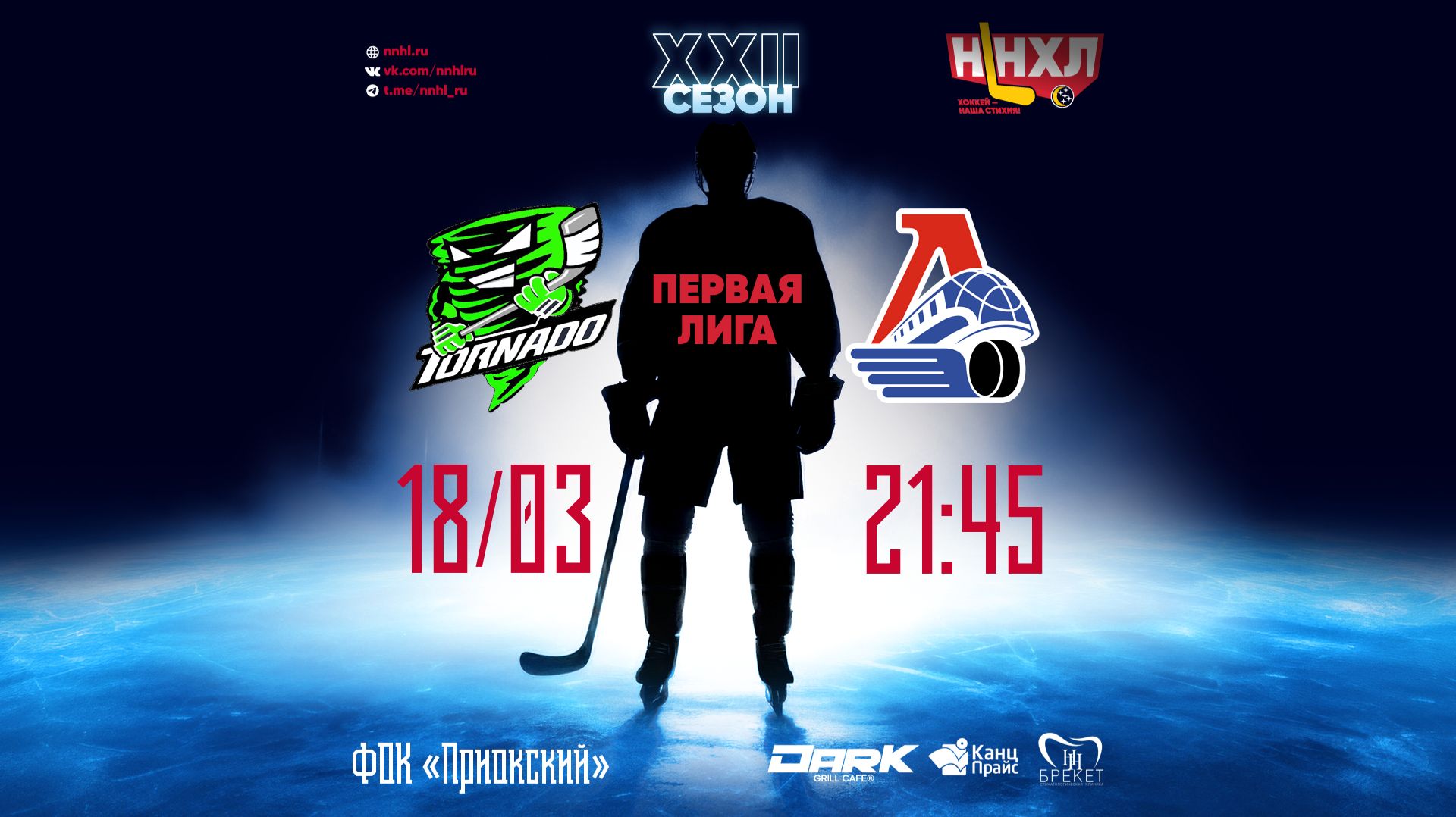 18.03.2026 Торнадо – Локомотив | Первенство ННХЛ, Первая лига. 1/4 финала, 2-й матч ФОК «Приокский», начало в 21:45.