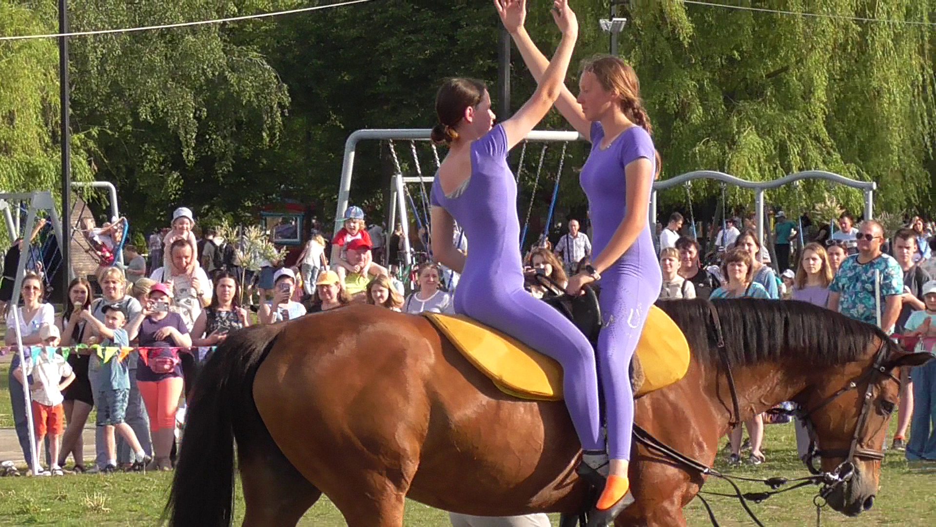 Показательное выступление на лошадях. Спортсменки