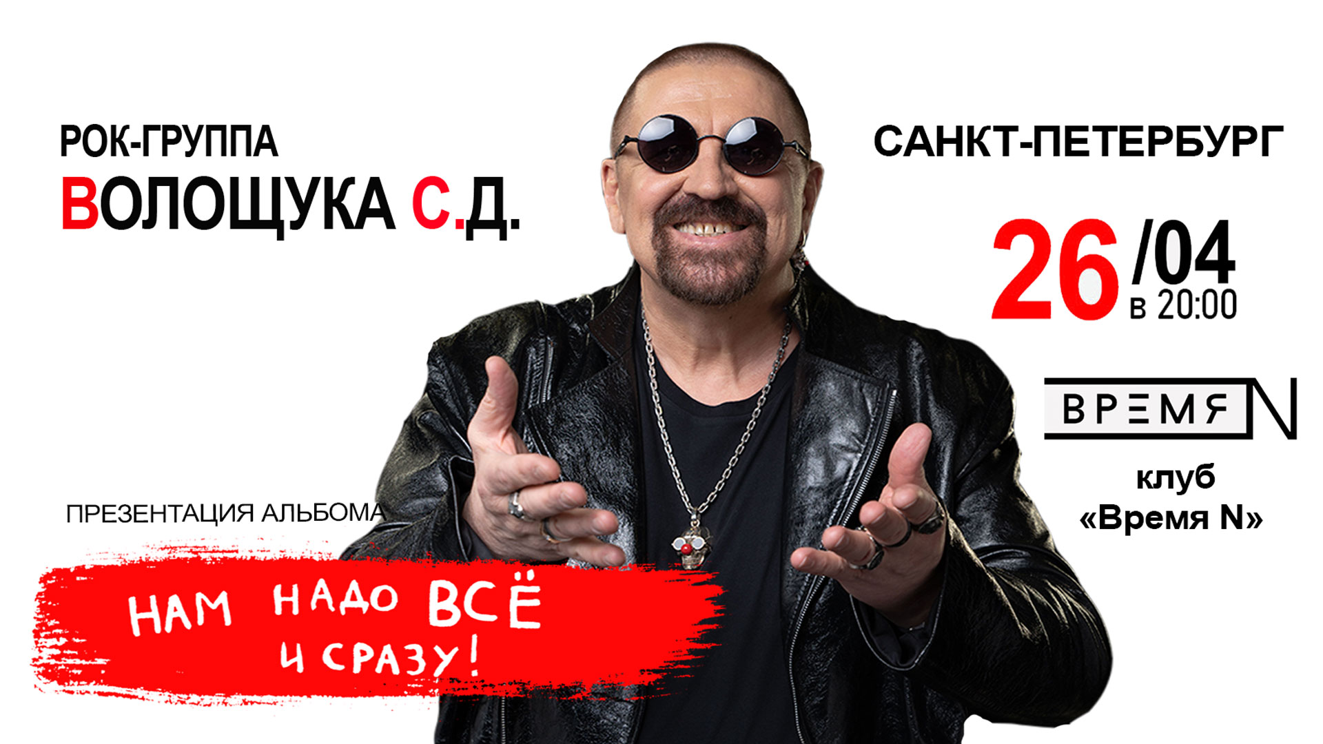 Рок-группа Волощука С.Д. ждет вас 26 апреля в 20:00 на концерте в клубе ВремяN