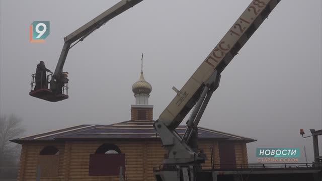 Крест строящегося храма в честь Архистратига Михаила освятили сегодня в селе Крутое Старооскольского округа. Чин освящения прошел в непривычных условиях - священнослужителям пришлось подниматься к куполу с помощью автовышки. С Божией помощью, всё прошло благополучно.