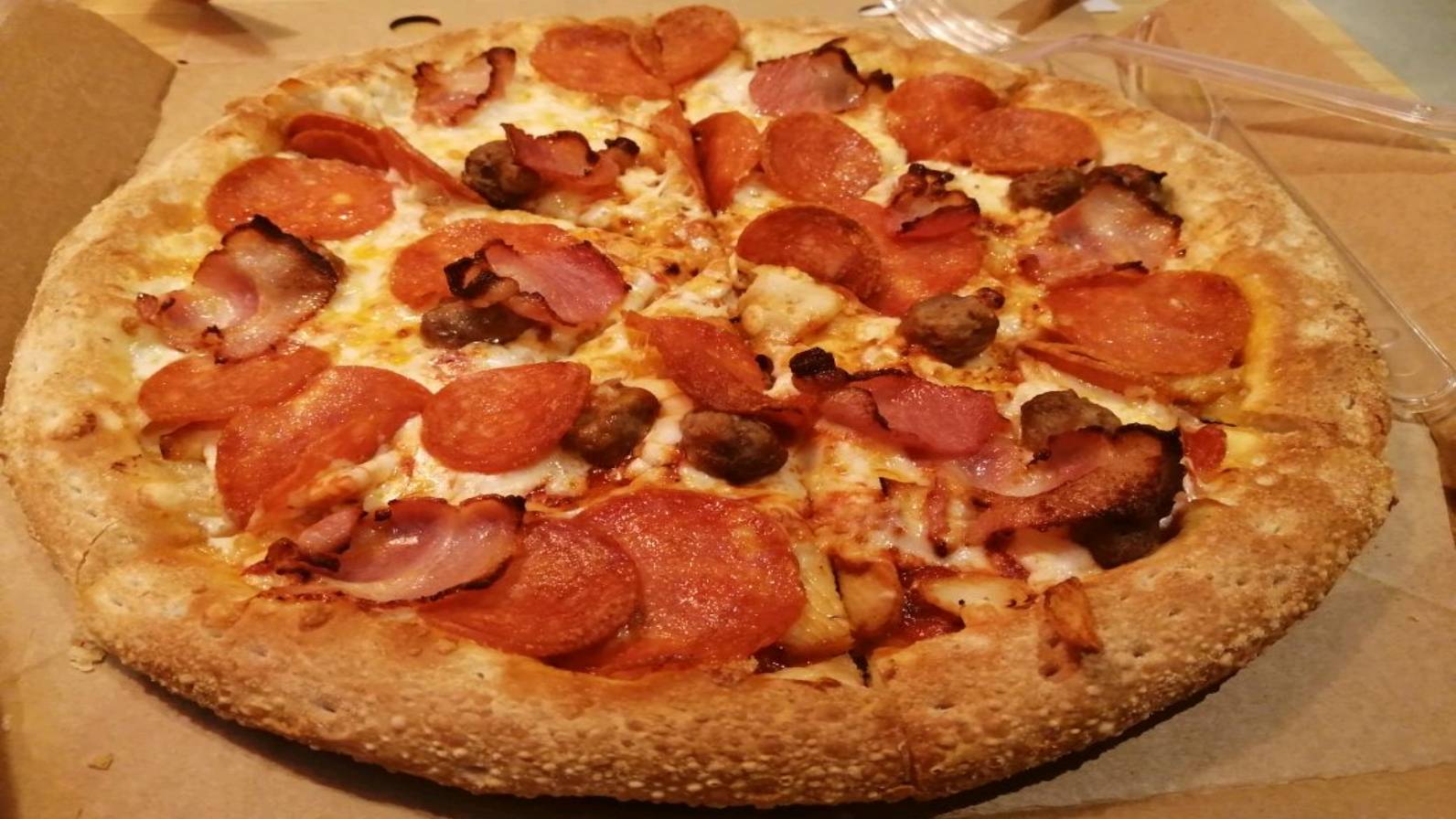 Пробую Мясную пиццу с аджикой. Остро получилось